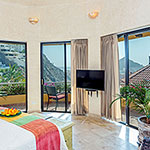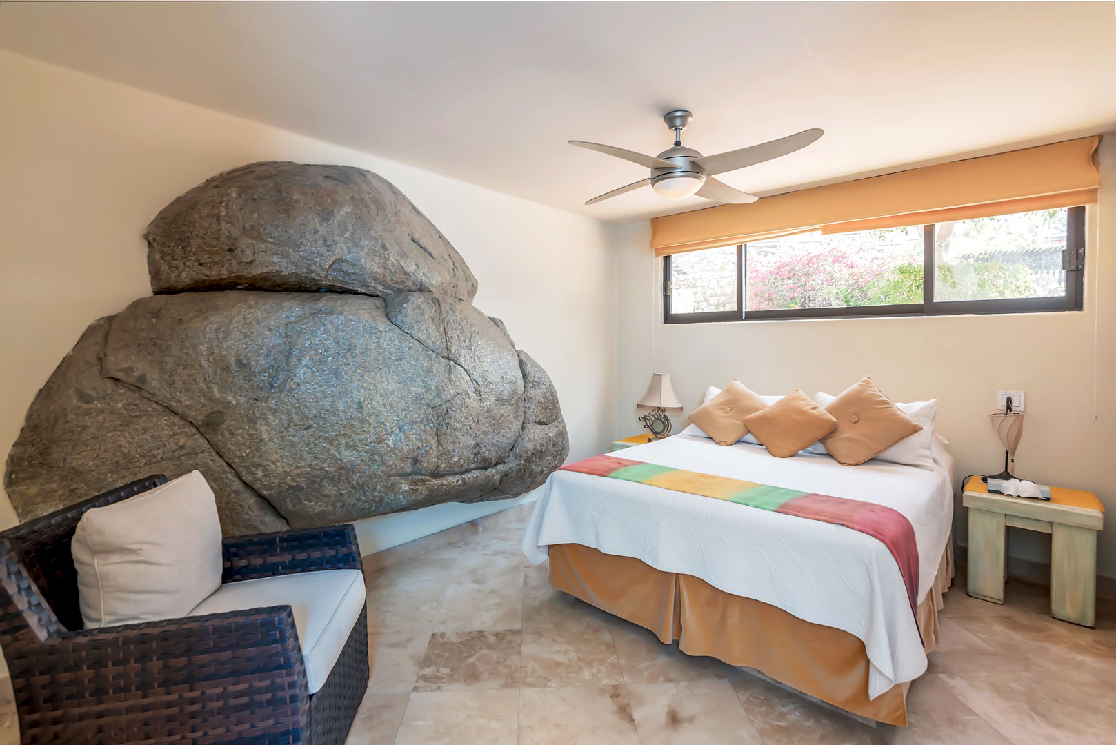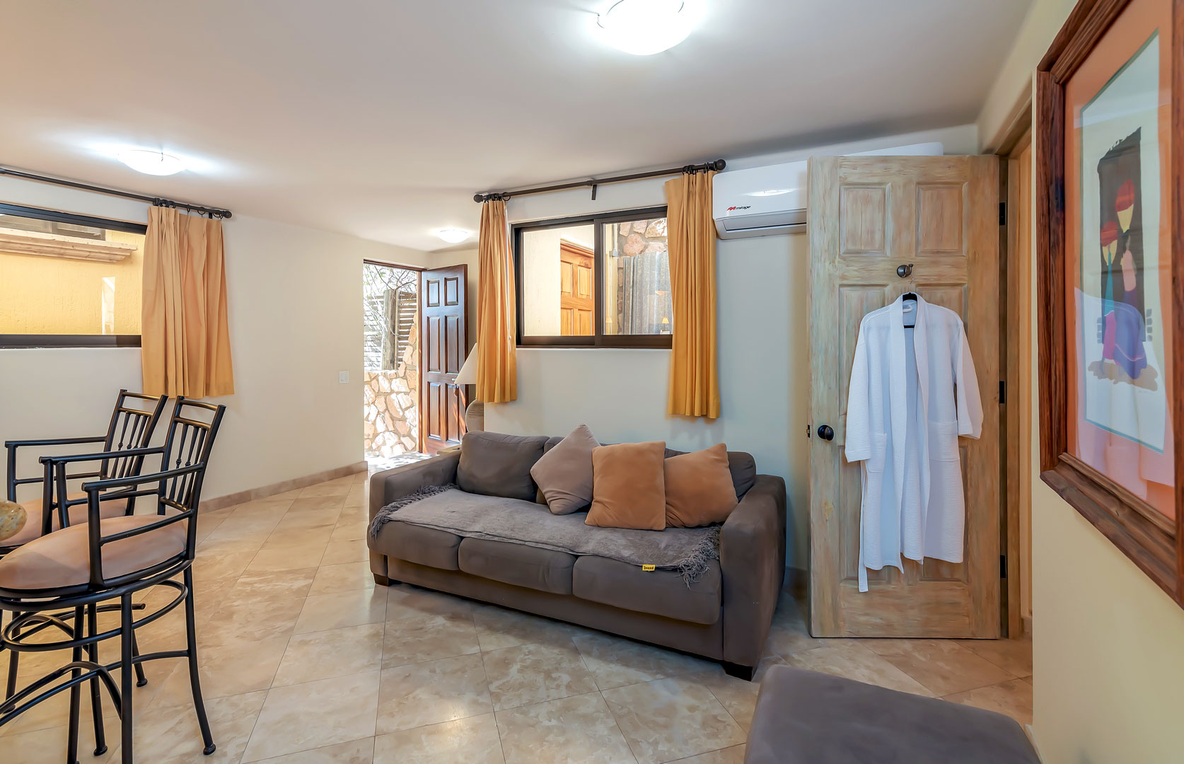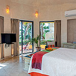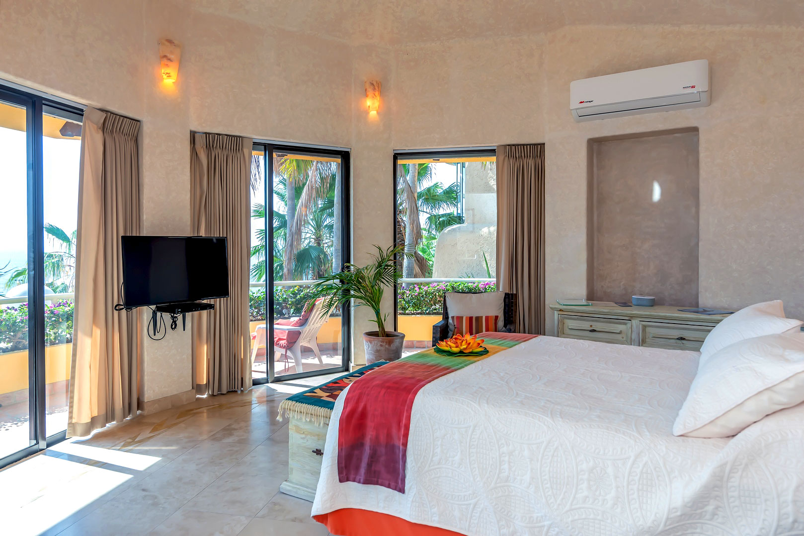 This guest room has a lovely view of the garden and the ocean from the private patio and comes equipped with: